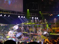 | La apoteosis del concierto llegó cuando tras cerca de media hora actuando, empezó a sonar el que ha sido el gran éxito hasta ahora de su disco 'Episode II', "Played-A-Live" (The Bongo Song) una canción que ha revolucionado las pistas de baile de todo el mundo, y con la que han ganado un Premio de la Música Danesa. No se trataba de dos dj's, como alguno podía esperar, sino de dos músicos actuando en directo, con un montón de instrumentos y desde luego dándolo todo. | |